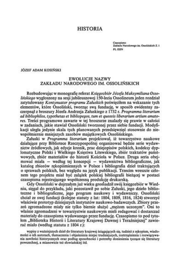 Czasopismo Zakładu Narodowego imienia Ossolińskich. Zeszyt 1
