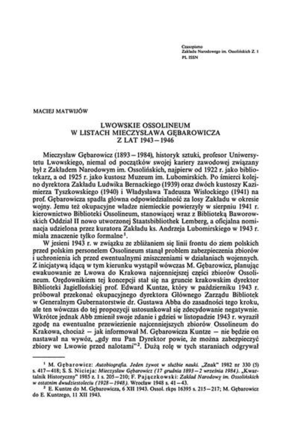 | Cz-ZNiO-001-10 / Lwowskie Ossolineum w listach Mieczysława Gębarowicza z lat 1943-1946 / Maciej Matwijów | Jun 24, 2025 |